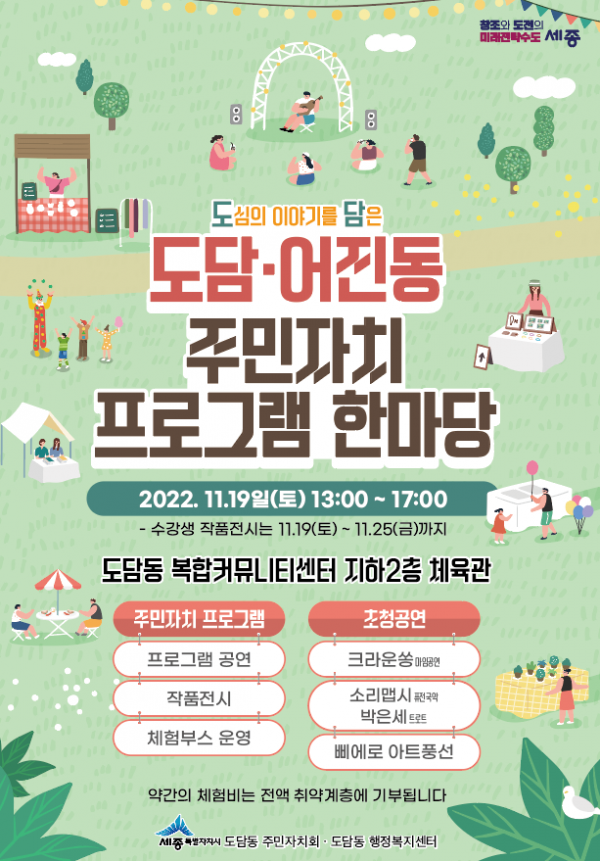[금요저널] 세종특별자치시 도담동과 도담동주민자치회가 오는 19일 도담동 복합커뮤니티센터 체육관에서 ‘도담·어진 주민자치 프로그램 한마당’행사를 개최한다.