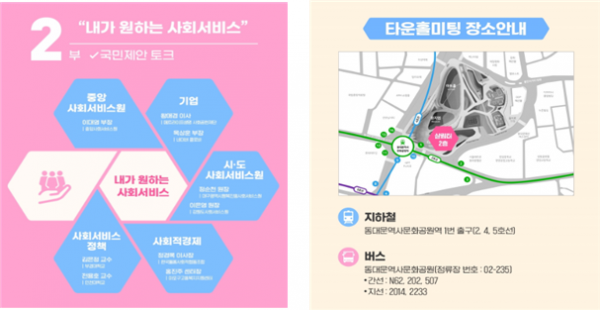 이번 타운홀미팅은 “사회서비스의 도전, 사회서비스가 새로워집니다”를 주제로 국민과의 소통의 장을 마련해 다양한 의견을 청취하고 체감도 높은 사회서비스 정책을 수립하며 사회서비스에 대한 긍정적 인식을 제고하기 위해 개최된다.