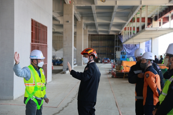 최 본부장은 공사장 내 설치된 간이소화장치, 간이피난유도선 등을 점검한 후 관계자들에게 용접·용단작업과 우레탄 폼 작업 시 안전수칙 준수, 피난로 적정 확보 등 화재예방을 당부했다.