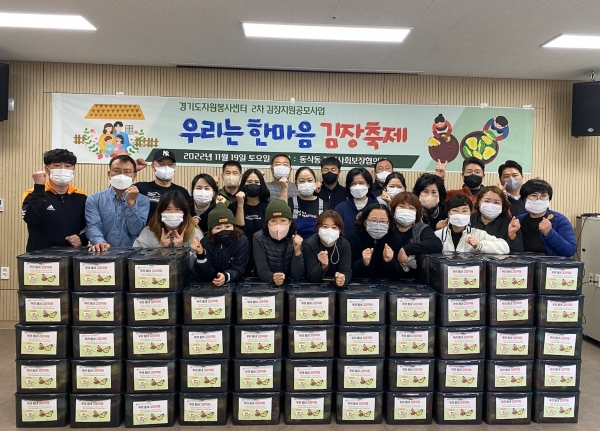 이번 행사는 경기도자원봉사센터에서 자원봉사 참여문화 확산과 사회적 통합을 구현하고자 실시한 ‘2022년 도민이 전하는 자원봉사 2차 지원사업’에 선정되어 보조금을 지원받은 사업으로 지역 내 자원봉사자와 동삭동 지역사회보장협의체 위원들이 하나 된 한마음으로 함께 참여해 당일 담근 김장김치를 취약계층 100가구에 전달해 더욱 뜻깊은 행사가 됐다.