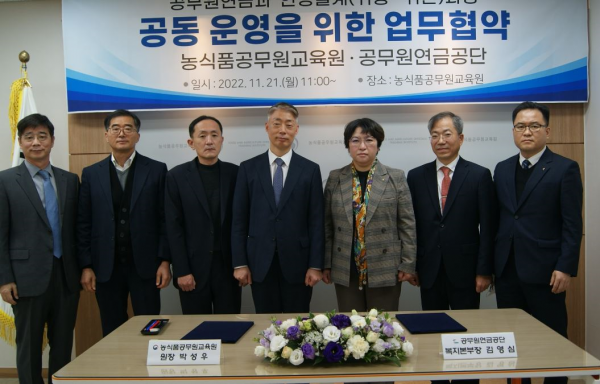 [금요저널] 농식품공무원교육원은 공무원연금공단과 “공무원연금과 인생 설계 귀농﮲귀촌 과정”을 2023년부터 공동 운영하기로 하고 업무협약을 체결했다.