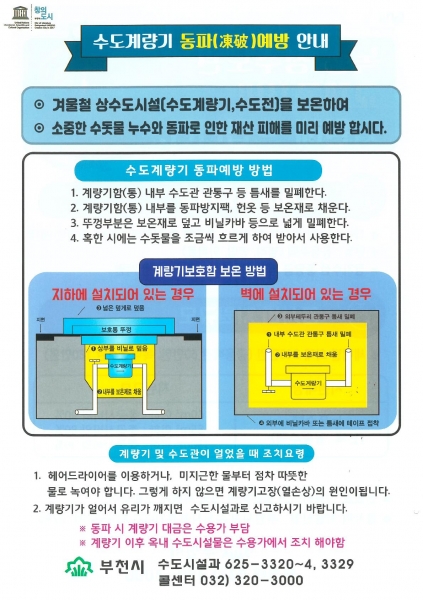부천시 “우리집 상수도 시설물 동파 예방 이렇게 준비하세요”