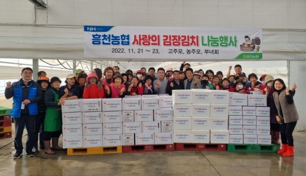 [금요저널] 흥천면과 흥천농협은 지난 11. 21 ~ 11. 233일 동안 부녀회, 농가주부모임, 고향주부모임, 생활개선회등 4개 여성단체회원들이 흥천농협 육묘장에 모여 사랑의 김장김치 나눔 행사를 가졌다.