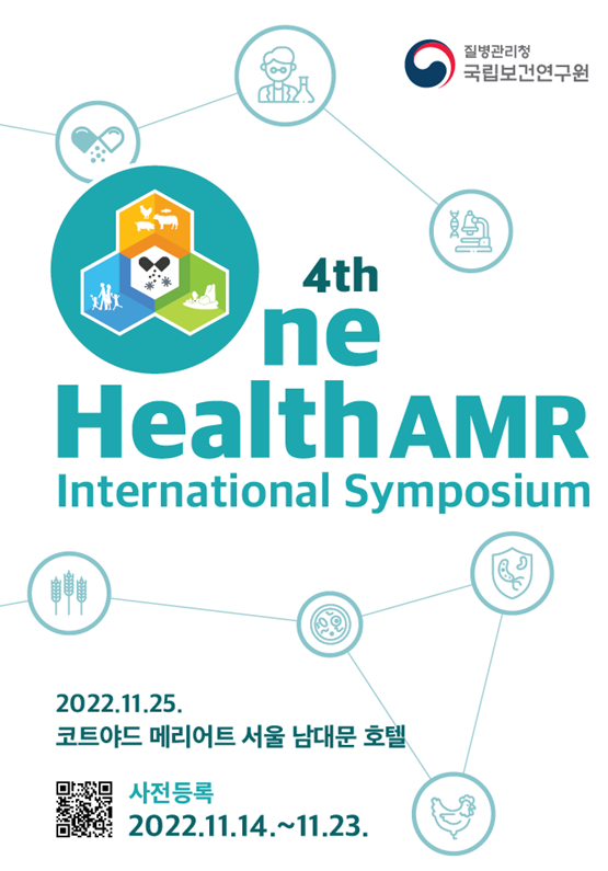 [금요저널] 질병관리청과 국립보건연구원은 올해로 제4회를 맞는 ‘2022년 원헬스 항생제 내성 국제 심포지엄’을 11월 25일 9시부터 서울 코트야드 메리어트 남대문 호텔에서 온·오프라인 혼합형태로 개최한다.