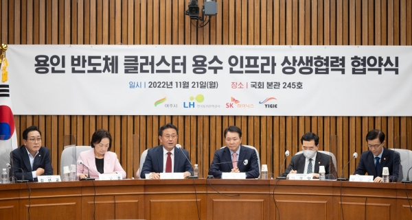 [금요저널] 여주시와 SK하이닉스가 11월 21일 국회 본관에서 ‘용인 반도체 클러스터 일반산업단지’ 공업용수 공급사업의 성공적 조성과 상생협력을 위한 협약식을 가졌다.