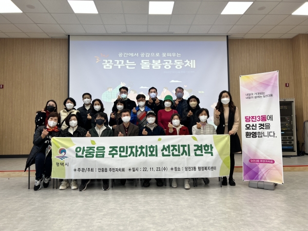 [금요저널] 평택시 안중읍 주민자치회에서는 지난 23일 더 나은 주민자치회 운영을 위해 충청남도 당진시 당진3동 주민자치회를 찾아 선진지 우수사례 견학을 했다고 밝혔다.