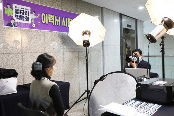 미처 이력서 사진을 챙기지 못한 시민들은 무료로 증명사진을 찍었고 20분이 채 되지 않아 기본 보정까지 마친 증명사진이 뚝딱 출력됐다.