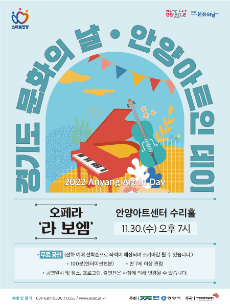 [금요저널] 안양문화예술재단은 경기도 문화의 날 주간을 맞아 시민의 문화 향유권 확대를 위해 30일 오후 7시 안양아트센터 수리홀에서 오페라 ‘라 보엠’을 공연한다.