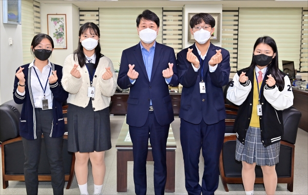 [금요저널] 부평구 청소년수련관 청소년기자단 ‘에디트’ 정책팀이 지난 22일 부평구청장 집무실에서 차준택 구청장과 인터뷰를 진행했다.