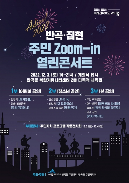 [금요저널] 세종특별자치시 반곡동이 다음달 3일 오후 2시부터 반곡동 복합커뮤니티센터 2층 다목적 체육관에서 개청 1주년을 기념하기 위한 ‘반곡·집현 주민 열린콘서트’를 연다.