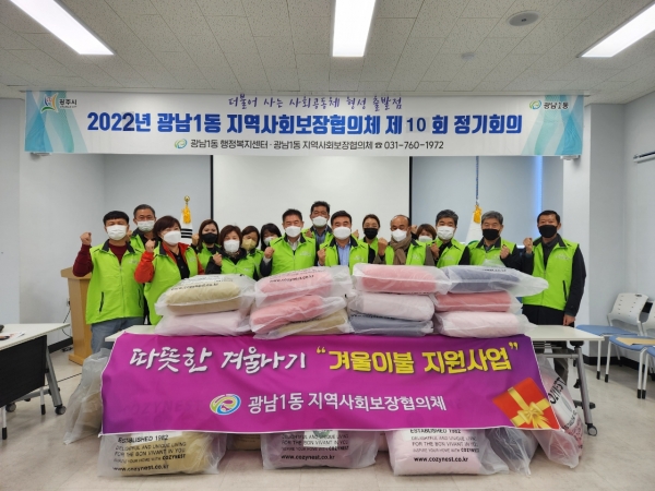 [금요저널] 광주시 광남1동 지역사회보장협의체는 지난 24일 위원 15여명이 참석한 가운데 취약계층을 위한 ‘따뜻한 겨울나기 겨울 이불 지원사업’을 추진했다.