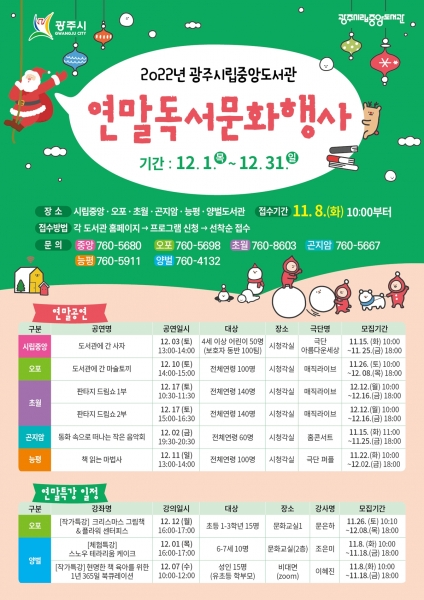[금요저널] 광주시는 다가오는 연말을 맞이해 도서관과 다양한 문화행사와 프로그램을 운영한다고 29일 밝혔다.