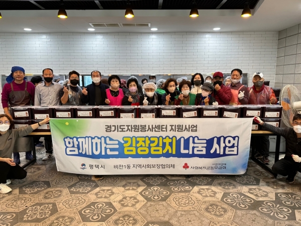 올해 ‘함께하는 김장김치’ 나눔 사업은 경기도자원봉사센터 공모사업을 통해 선정되어 진행하게 됐으며 행복나눔본부에서 ‘작은통 큰사랑’ 사업을 통해 지원해준 김치통을 사용해 평택시민들의 정성까지 같이 전달하게 됐다.