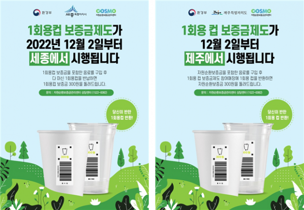 [금요저널] 환경부는 12월 2일 세종특별자치시와 제주특별자치도에서 시행되는 일회용컵 보증금제에 참여하는 소비자와 매장에 대해 다각적인 혜택과 지원을 제공할 계획이라고 밝혔다.
