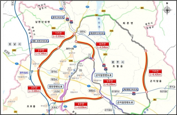 한편 광주시 순환도로 및 경안·곤지암 천변 도로는 총 연장 46.04㎞, 총 사업비는 1조 57억원이 소요될 것으로 예상되고 있다.