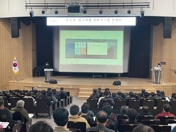 이에 시는 30일 시청 대강당에서 오홍선 도시주택국장을 비롯해 건축사와 인허가 실무자 등 200여명 과 선진사례를 조사하기 위한 오산시 건축인허가 담당자도 참석한 가운데 ‘건축사 업무대행 관리 시스템 설명회’를 개최하고 시스템의 다양한 기능을 소개했다.