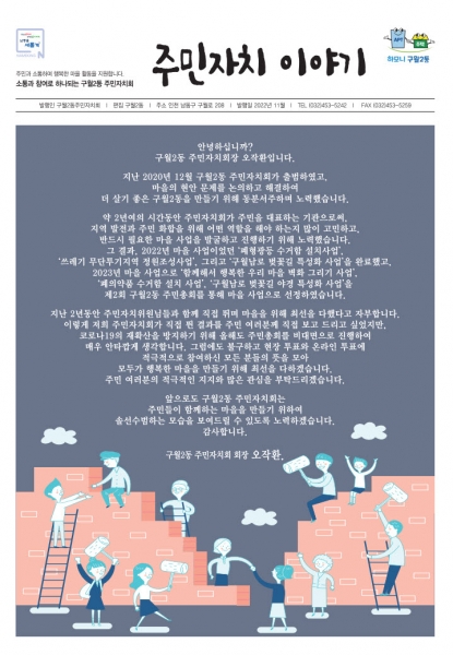 [금요저널] 인천시 남동구 구월2동 주민자치회는 최근 올해 주민총회 결과와 1년간 주민자치회의 활동 모습을 담은 소식지를 발간했다고 1일 밝혔다.