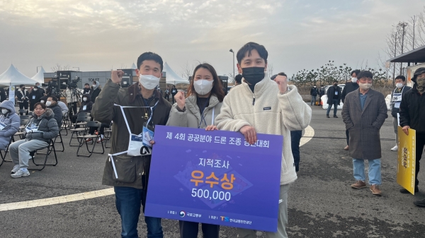 국토교통부가 주최하고 한국교통안전공단이 주관한 이번 대회는 구조물 점검, 수색·탐색, 지적 조사, 환경감시·조사 등 총 4가지 분야로 이뤄졌으며 각 분야별 최우수 1팀, 우수 1팀, 장려 1팀을 선발했다.