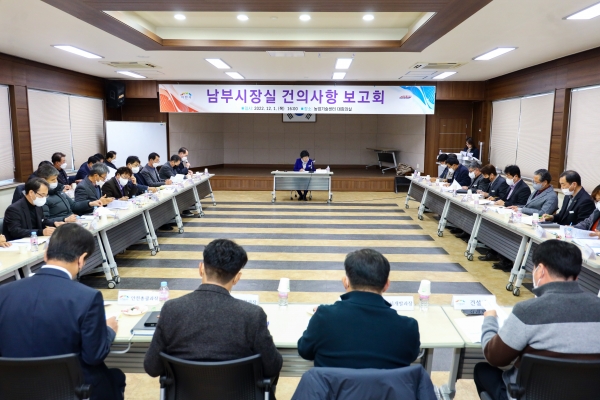 이번 보고회는 8월부터 10월말까지 13회의 걸쳐 진행된 남부시장실에서 시민이 호소한 여러 건의사항에 대한 최종적인 점검과 향후 원활한 추진을 위해 마련했다.