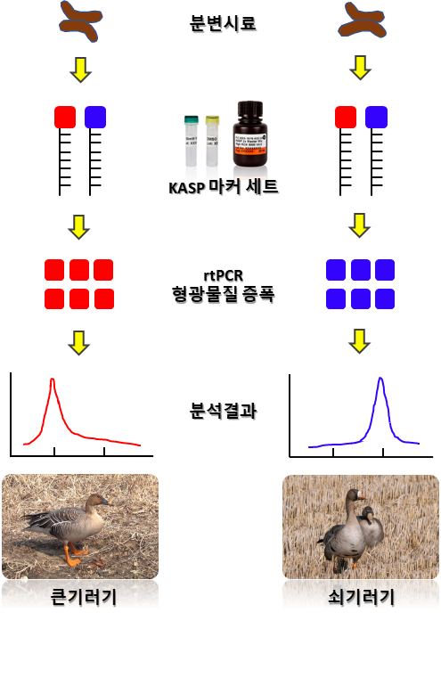 이번에 개발된 유전자 표지는 큰기러기와 쇠기러기의 종 특이적 유전자 염기서열을 확인해 두 종을 쉽게 구분할 수 있는 방식으로 짧은 시간에 간단한 실험을 통해 종을 식별할 수 있다.
