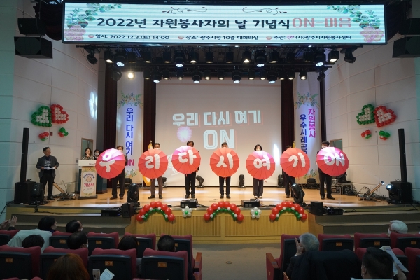 [금요저널] 사단법인 광주시자원봉사센터는 12월 3일 광주시청 대회의실에서 2022년 광주시 자원봉사자의 날 기념식‘ON-마음’을 진행했다.
