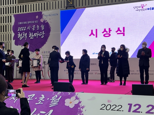 [금요저널] 인천시 남동구는 최근 남동구 마을공동체 인플러스가 ‘2022년 시·공·초·월 협력 한마당 행사’에서 마을공동체 우수사례로 선정돼 인천시장 표창장을 수상했다고 7일 밝혔다.