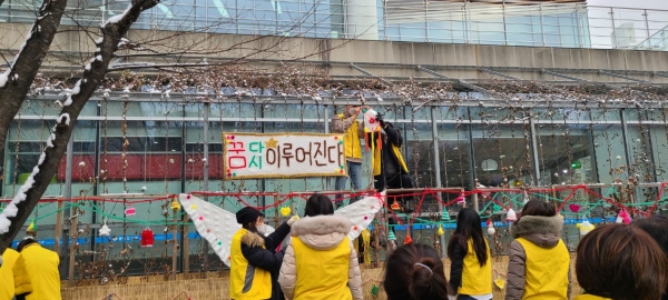 [금요저널] 지난 6일 오산시 중앙도서관의 키움봉사회가 ‘나무뜨개옷 입히기’ 행사를 진행해 도서관 주변 겨울의 앙상한 나무와 황량한 거리를 포근한 거리로 만들었다.