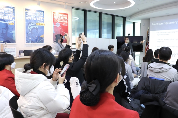 평택 아메리칸 코너를 가득 채운 학생들로부터, 특히 양국의 공공외교 방향과 현직 외교관에게 듣는 외교 배경, 미국 외교관으로의 업무 등에 대한 질문이 많아 행사 내내 뜨거운 열기가 이어졌다.