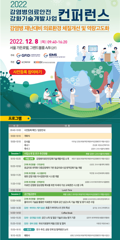 [금요저널] 보건복지부와 방역연계범부처감염병연구개발사업단은 12월 8일 오전 10시, 서울가든호텔에서 ‘2022 감염병의료안전강화기술개발사업 컨퍼런스’를 개최한다.