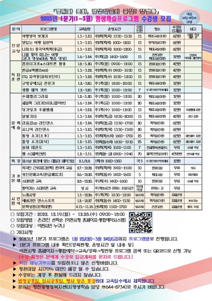 창전동, 2023년 1분기 평생학습 프로그램 수강생 모집