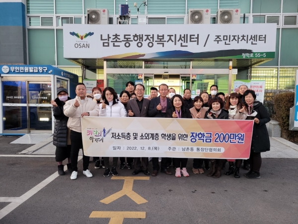 [금요저널] 오산시 남촌동통장단협의회는 지난 8일 어려운 학생들에게 전달해 달라며 장학금 200만원을 남촌동에 전달했다.