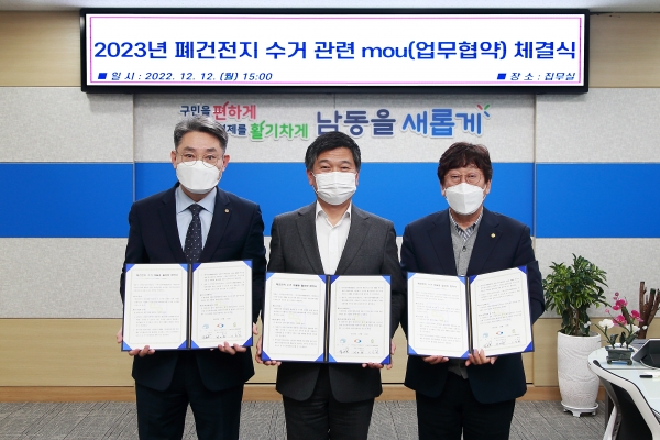 박종효 남동구청장은 “이번 협약을 통해 폐건전지가 올바르게 분리 배출돼 환경보호는 물론 소중한 자원으로 거듭날 수 있도록 주민홍보 등 재활용 활성화에 노력하겠다”고 말했다.