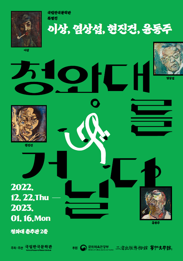 문화체육관광부는 국립한국문학관, 삼성출판박물관, 영인문학관과 함께 청와대 춘추관 2층에서 12월 22일부터 2023년 1월 16일까지 문학 특별전시 ‘이상, 염상섭, 현진건, 윤동주, 청와대를 거닐다’를 개최한다.