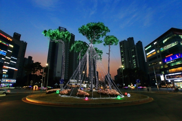 축제 기간 회전교차로 중앙에 크리스마스 대형트리 조명이 설치되고 주변 가로등과 가로수에 은하수 LED 등을 이용한 야간경관 조명으로 꾸며진다.