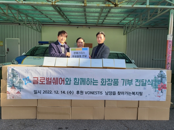 남양읍은 14일 국제구호개발 NGO단체인 글로벌쉐어로부터 1억원 상당의 화장품 세트를 기탁 받았다.