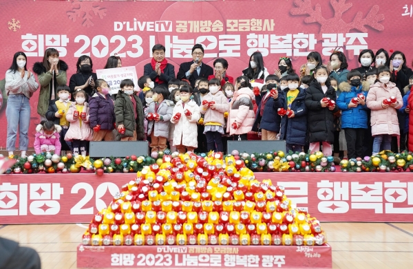[금요저널] 광주시는 지난 15일 경기사회복지공동모금회, 딜라이브 tv와 연말 어려운 이웃에게 힘이 되기 위한 ‘희망 2023 나눔으로 행복한 광주’ 공개방송 모금행사를 성황리에 마쳤다고 밝혔다.