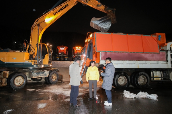 김경희 이천시장은 13일 마암리 제설전진기지를 방문해 연일 제설에 힘쓰는 공무원과 도로관리원을 격려하며 “많은 눈이 내리는 상황에서 안전한 이천시를 만들기 위해 밤낮 구분 없이 일해주시는 여러분에게 감사하다”고 말하며 “우리가 뿌리는 소금은 제설재 그 이상의 안전의 씨앗이니 자부심을 가지고 작업에 임해주시기 바란다”고 당부했다.