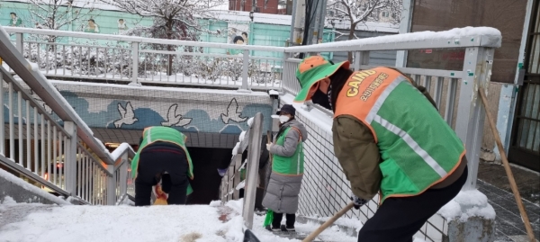 15일 오후, 영하의 추운 날씨에도 불구하고 유동 인구가 많은 다중이용시설 주변 골목길 및 인도 등 보행 안전에 위험이 있는 곳을 위주로 이루어졌다.