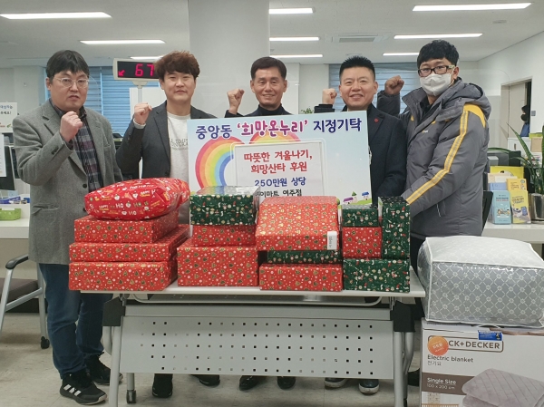 [금요저널] 지난 17일 여주 이마트는 한파 취약계층을 위한 난방용품 및 저소득 미취학 아동을 위한 선물 등 250만원 상당의 물품을 중앙동행정복지센터에 기탁했다.