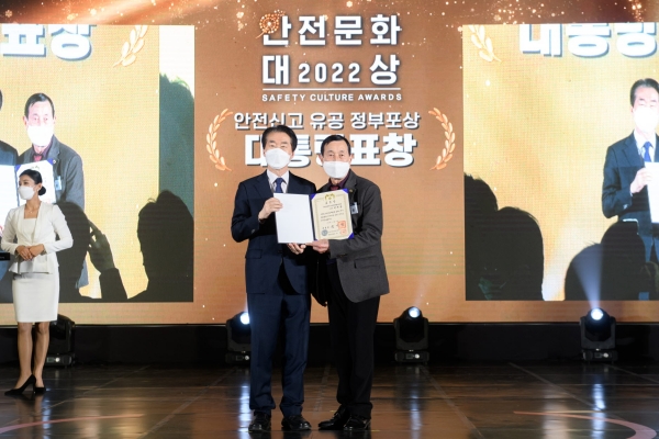 행정안전부가 주관하는 ‘2022 안전문화대상’은 사회 각 분야에서 안전 문화 형성에 기여한 유공 단체와 개인에게 수여하는 상이다.