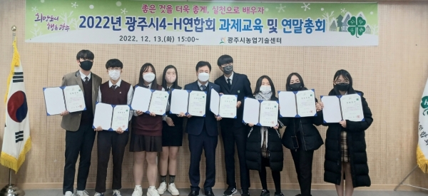 [금요저널] 광주시농업기술센터는 지난 13일 광주시 4-H 연합회 연말총회에서 2022년 우수학생 4-H 회원 10명에게 장학증서와 함께 장학금 각 30만원을 수여했다.