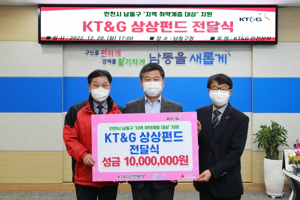한편 KT&G 인천본부는 남동구에 이웃돕기 후원금과 더불어 다양한 사회공헌 사업을 통해 남동구 기부자 명예의 전당 플래티넘 그룹에 등재되며 이웃사랑 실천을 위한 동행에 앞장서고 있다.