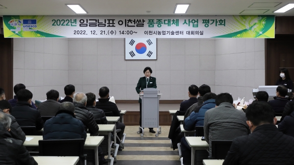 [금요저널] 이천시는 12월 21일 오후 이천시농업기술센터 대회의실에서 임금님표 이천쌀 품종대체 사업 평가회를 개최했다.