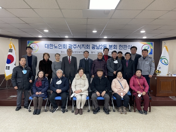 [금요저널] 대한노인회 광주시지회 광남2동분회는 지난 21일 광남2동 행정복지센터 내 분회 사무실을 개소하고 현판식을 개최했다.