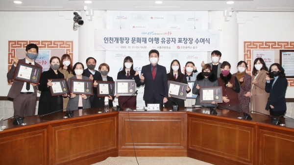[금요저널] 인천 중구는 2022년 인천개항장 문화재 야행 행사를 성공적으로 추진할 수 있도록 협조한 지역주민과 관련단체 및 기관에 시장·구청장 표창장 등을 21일 수여했다.