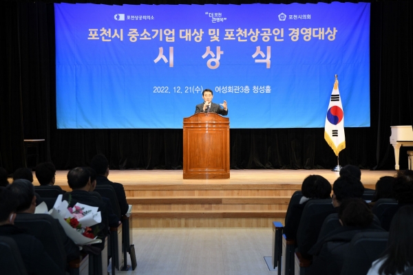 [금요저널] 포천시는 지난 21일 포천여성회관 청성홀에서 2022년 ‘제20회 포천시 중소기업대상’ 시상식을 포천상공회의소 상공인 경영대상 시상식과 함께 개최했다.