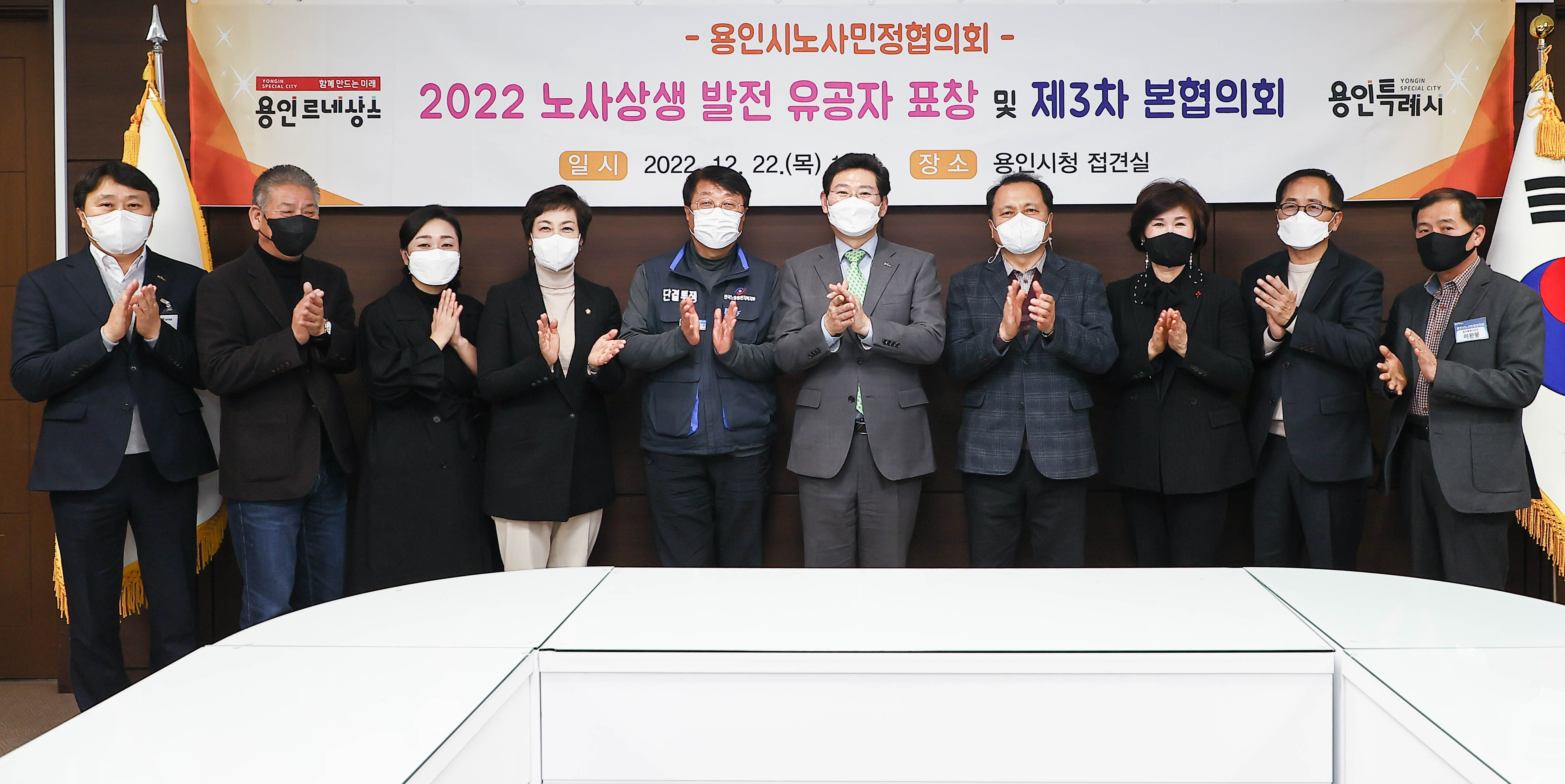 용인특례시(시장 이상일)는 22일 시청 4층 접견실에서 용인시노사민정협의회 제3차 본협의회를 열고, 노사상생 발전 유공자 10명에 표창을 전달했다.