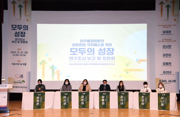 [금요저널] 시흥시는 지난 22일 시흥시청 늠내홀에서 이주배경아동을 포함한 모든 아동의 건강한 성장을 주제로 한 ‘이주배경아동의 성장환경 격차 해소를 위한 연구조사 보고 및 토론회’를 개최했다.