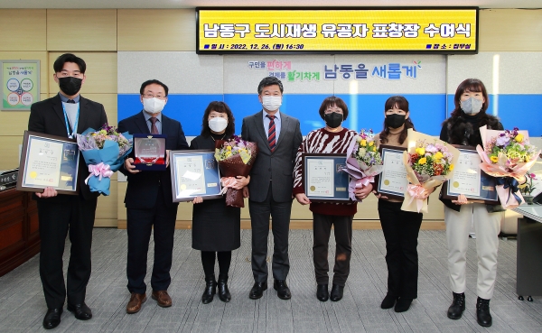 [금요저널] 인천시 남동구는 최근 구청장 집무실에서 2022년 남촌동 도시재생사업 국토부 공모 선정 유공자에게 표창장을 수여했다고 27일 밝혔다.