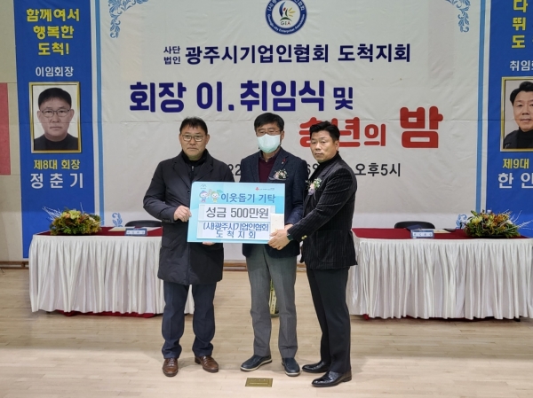 광주시기업인협회 도척지회는 지난 26일 회장 이·취임식 및 송년의 밤 행사에서 이웃돕기 성금으로 500만원을 도척면에 기탁했다.